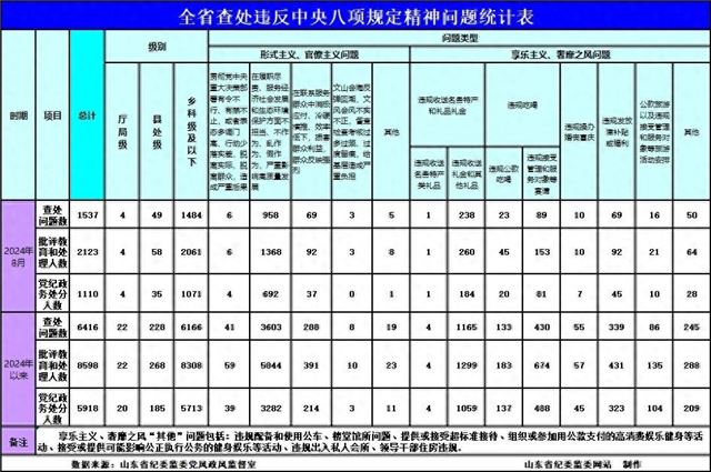 2024年以来,截至8月31日,全省查处违反中央八项规定精神问题情况如下: