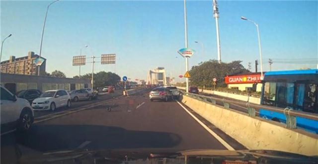 此前有视频显示,一大桥上,一白色车辆从对向车道驶来,逆行撞击多辆机动车及电动车。