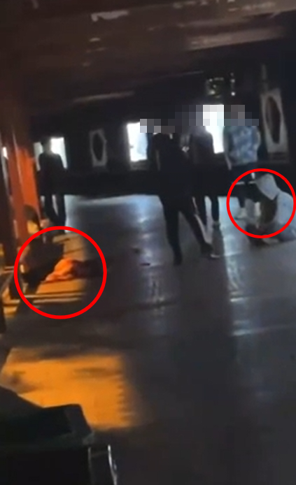 另外一条视频显示,女生已经倒在血泊里,疑似伤人男子坐在地上,戴着帽子,周边站着几个人。