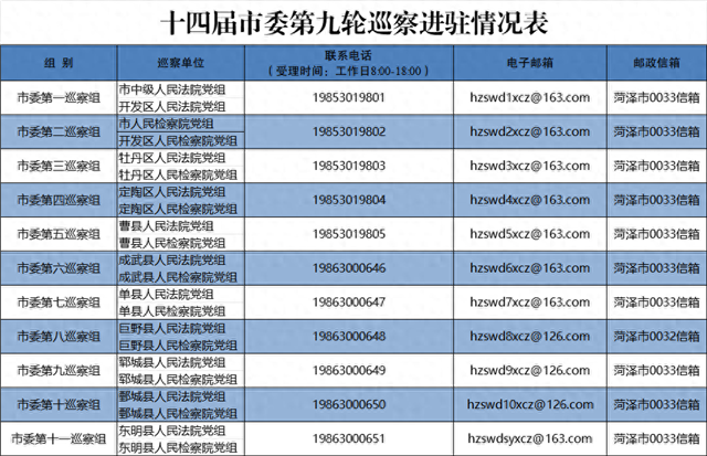 根据市委统一部署,截至11月9日,十四届市委第九轮巡察完成进驻工作。11个巡察组将对市县(区)人民法院、人民检察院党组进行巡察。