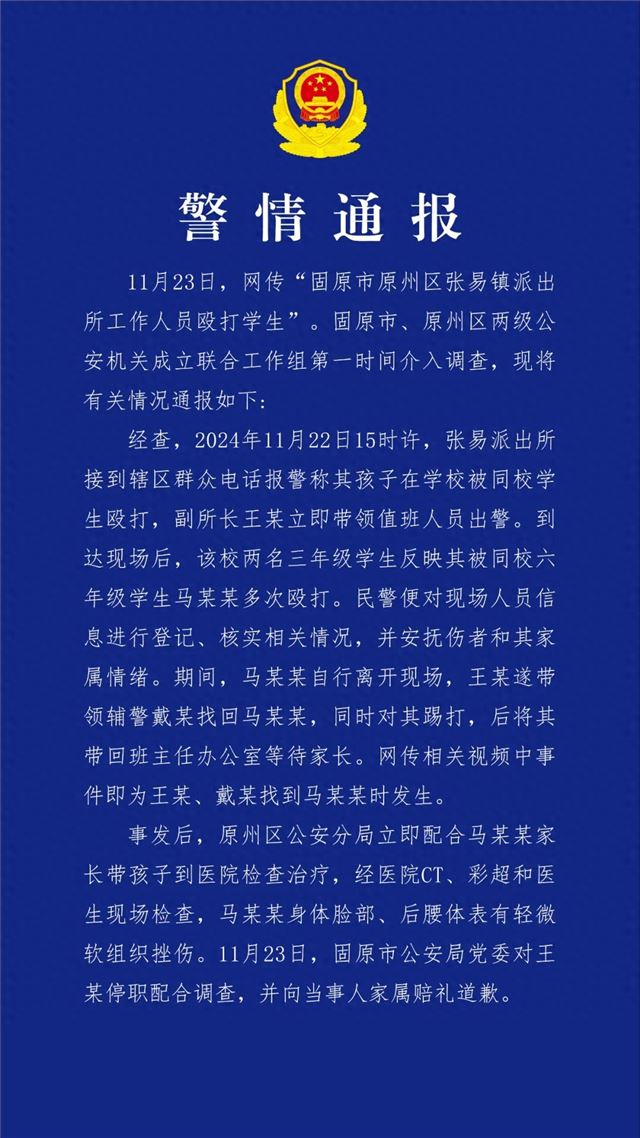 新京报讯 11月24日,平安原州官微发布警情通报。