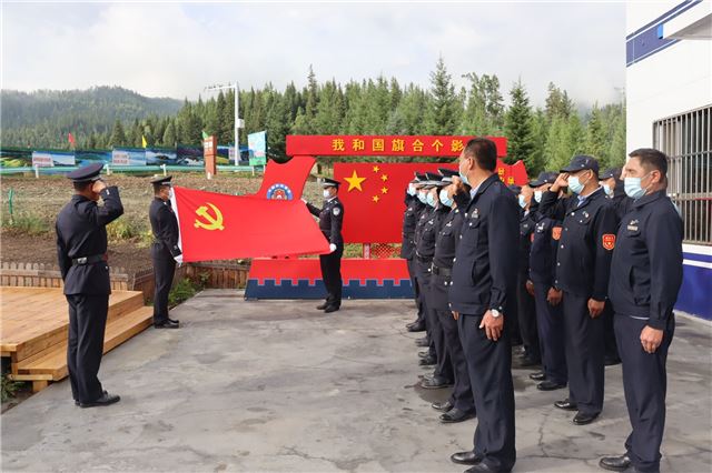 为庆祝中国共 产 党成立102周年,深入学习贯彻党的二十大精神,回顾党的光辉历程,讴歌党的丰功伟绩,弘扬警营新风尚,激发队伍新活力,在“七一”来临之际,新疆阿勒泰边境管理支队贾登峪边境派出所组织开展了重温入党誓词、观看红色电影、开设专题党课等系列活动。