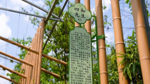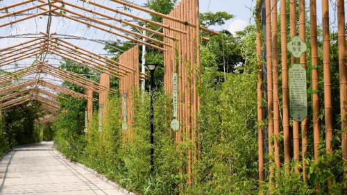 在 200 米竹棚长廊悬挂诗词故事牌,结合古代廉洁文化诗词、故事、书法,在游览书写着诗歌的艺术藤蔓装置中,品读中国书法篆书、隶书、楷书、宋体、行书的演变,在清风大道上读传承康续的“廉洁清志”和“中国好家风”。