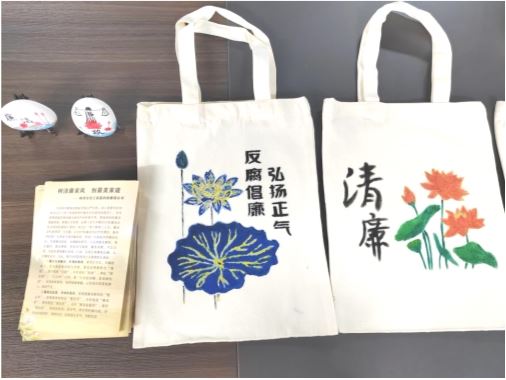 为做好本次活动,切实达到廉洁文化宣传效果,项目党支部精心组织,提前计划,采购了足够的环保布袋、颜料、绘画笔、石头画、竹编等文创作品DIY材料。女职工和职工家属们在轻松愉快的氛围中,用心制作,一笔笔描绘、一点点调色、呈现出一个个廉字,一朵朵莲花,象征着廉洁家文化在每个家庭中落地生根,彰显着对廉洁价值观的共同追求,完成了寓意廉洁的手绘廉洁文创作品。随后,项目支部书记给每一位职工家属发放了“树廉洁家风,创幸福家庭”倡议书,倡导全体干部职工家属以廉立家、倡廉齐家、清廉传家、以德兴家,呼吁全体员工及员工家属要做知廉倡廉的明白人,一起携手共筑家庭廉洁防线,共创未来美好生活!