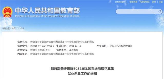 《通知》还强调,持续推进就业监测与综合评价改革。加强就业进展监测,认真落实毕业去向登记制度,分级开展就业监测数据自查,确保数据真实准确。深入推进就业评价改革,建立健全科学高效的就业评价体系,全面开展高校毕业生就业状况跟踪调查,为教育教学评估、就业工作质量评价提供参考。