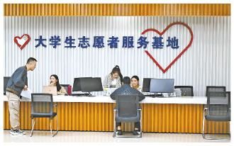 大学生志愿者正在为群众解答相关法律问题。2008年,西城区人民法院与中国政法大学合作,设立全国首家志愿者服务基地。