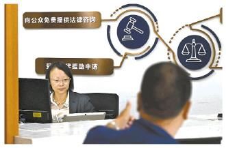 一名群众的咨询得到满意解答后,高兴地向法援律师竖起大拇指表示感谢。2015年起,西城区司法局法援中心律师每周定时来法院提供诉讼咨询、代写文书及法律援助服务。