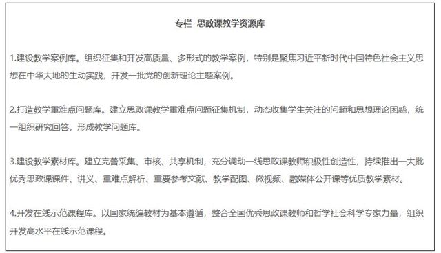 《方案》提出要建设全国高校思政课教研系统,加强国家智慧教育平台思政教育资源建设,推出一批思政“金课”。另外,教育部还将会同中央网信办等,组织开展“大思政课”网络主题宣传活动,鼓励师生围绕思政课教学内容创作微电影、动漫、音乐、短视频等,建设资源共享、在线互动、网络宣传等为一体的“云上大思政课”平台。