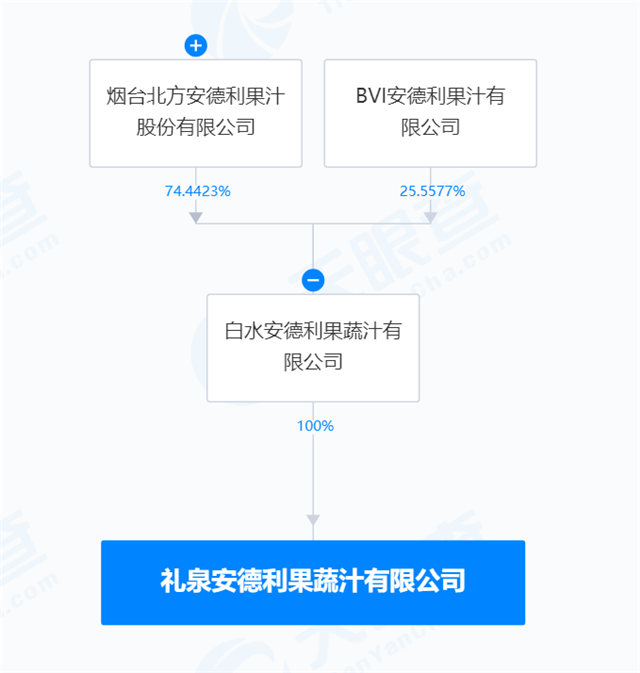 天眼查资料显示,礼泉安德利系A股H股双上市公司安德利的下属公司。