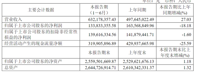 就在8月27日,安德利披露2024年半年度报告。2024年上半年,公司实现营业收入6.32亿元,同比增长27.03%,但与此同时营业成本增长了35.1%;归母净利润1.34亿元,同比下降18.18%;扣非净利润1.4亿元,同比下降1.60%,出现了增收不增利的情况。经营活动产生的现金流量净额为3.2亿元,同比下降25.59%;报告期内,安德利基本每股收益为0.38元,加权平均净资产收益率为5.18%。其中,礼泉安德利上半年净利润超过1000万元,总资产达2.56亿元。安德利称,近年来公司外销收入占比约60%-70%,在国内外主要市场均具有较高的市场占有率。