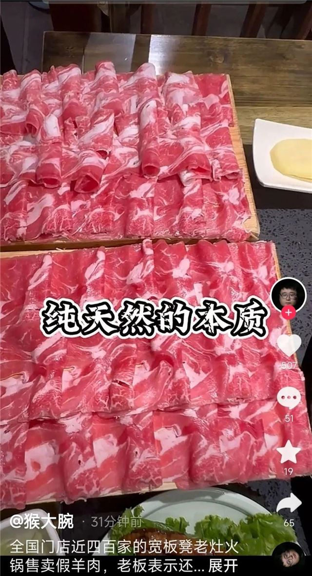 也有网友怀疑羊肉被博主调换过。还有网友称,羊肉为总部配送,感觉不能全怪老板。