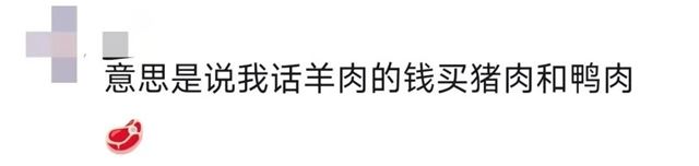 对此,有网友表示,意思是说我花羊肉的钱买猪肉和鸭肉。