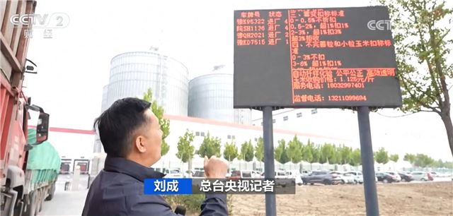 记者来到了位于河南驻马店市的一家玉米深加工企业,在距离厂区门口20米左右的地方,看到了一块液晶屏。在上面可以看到玉米的收购价格,包括收购的标准都标注得非常清楚。