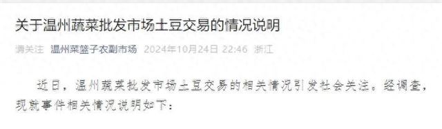 10月24日,温州菜篮子农副产品批发交易市场发布情况说明: