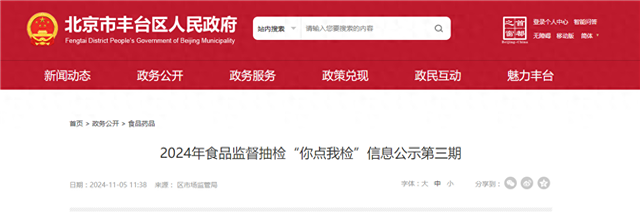 2024年,丰台区市场监督管理局按照北京市市场监督管理局要求,常态化开展你点我检工作,本次共开展监督抽检453批次,其中,餐饮食品10批次,全部合格;炒货食品及坚果制品13批次,全部合格;糕点97批次,全部合格;罐头20批次,全部合格;酒类58批次,全部合格;肉制品7批次,全部合格;乳制品43批次,全部合格;食用农产品54批次,全部合格;薯类和膨化食品30批次,全部合格;水产制品8批次,全部合格;糖果制品32批次,全部合格;饮料81批次,全部合格。