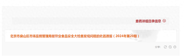 北京市房山区市场监督管理局餐饮业食品安全大检查发现问题的处置通报(2024年第20期)