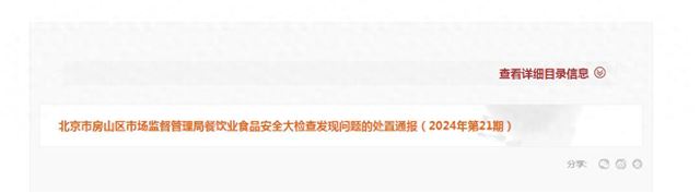 北京市房山区市场监督管理局餐饮业食品安全大检查发现问题的处置通报(2024年第21期)