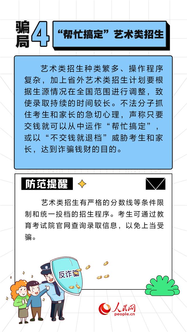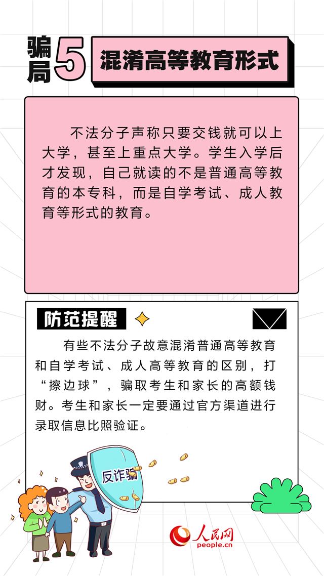 近期,全国各地陆续公布高考成绩,高考志愿填报工作已启动。一些不法分子抓住考生和家长对院校和专业的“信息差”,实施诈骗活动。人民网“求真”栏目整理了几类常见的有关高考志愿填报的骗局,提醒广大考生和家长提高警惕。