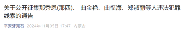 为深挖彻查犯罪,维护人民群众的合法权益,公安机关现向广大人民群众征集那秀恩、曲金艳、曲福海、郑淑丽等人的违法犯罪及其背后"保护伞”的线索。公安机关将对举报人的相关信息严格保密;对尚未掌握的违法犯罪线索,一经查实,公安机关将予以奖励;对举报人员进行威胁、恐吓、打击报复,对涉案人员窝藏、包庇或混淆视听、干扰公安机关取证办案的人员,将依法追究其法律责任:对参与相关违法犯罪,主动到公安机关投案自首的人员,公安机关将视情节依法予以从轻减轻或者免于处罚。