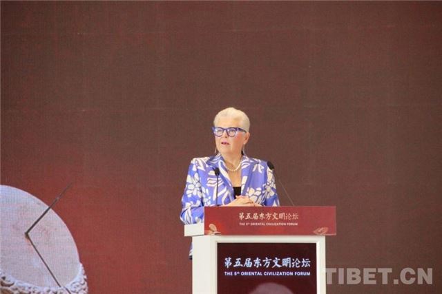 图为新西兰前总理、博鳌亚洲论坛理事珍妮·希普利在第五届东方文明论坛上作主题演讲。摄影:刘莉