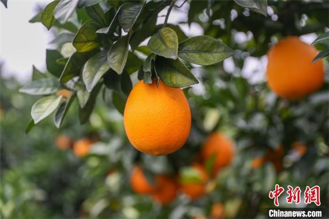 11月23日,江西赣州信丰县一果园,金黄的脐橙挂满枝头。中新社记者 刘力鑫 摄
