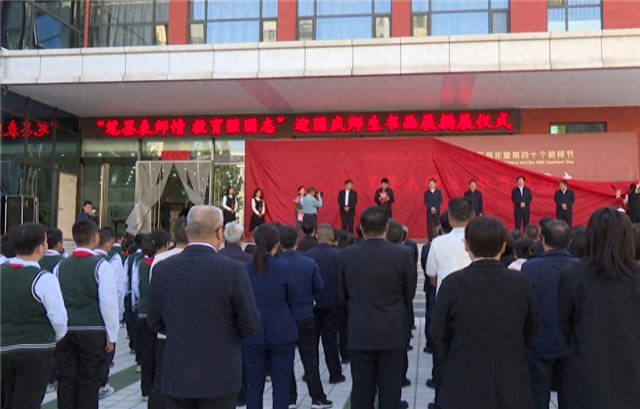 10月1日,“笔墨表师情 教育强国志”迎国庆师生书画展在我市教育事业发展中心正式揭展。市委副书记、市长贾永祥,市领导王云照、刘梁、靳福斌、李建军、宋钧为书画展揭展。