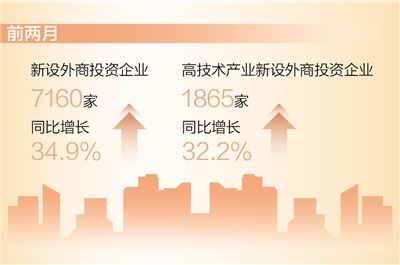 从结构看,前两月,高技术产业新设外商投资企业1865家,同比增长32.2%;实际使用外资714.4亿元,占全国实际使用外资比重达33.2%,较2023年同期占比提高1.2个百分点。其中,高技术制造业实际使用外资282.7亿元,同比增长10.1%。