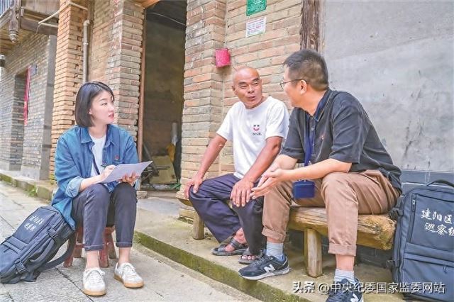 福建省南平市纪委监委探索实践“审巡纪”联动监督、“背包巡察”等机制,深入群众身边,精准发现和整治群众身边不正之风和腐败问题。图为建阳区纪检监察干部与巡察组干部在崇雒乡后畲村向村民了解惠农政策落实情况,收集问题线索。 林美娟 摄