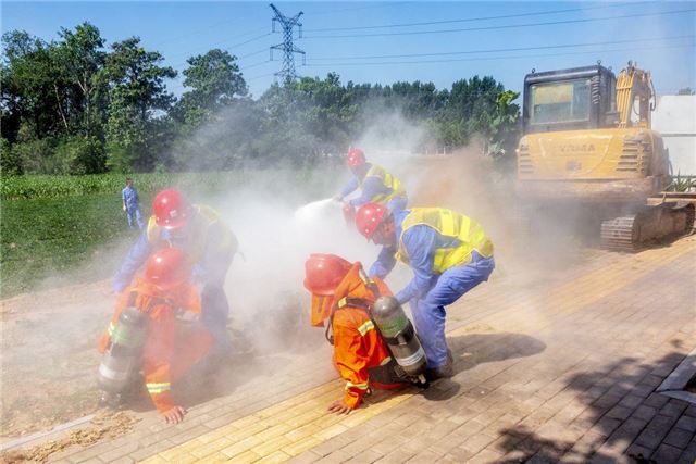 2024年前8个月全国生产安全事故总量同比下降25.7%。图为河南滑县举行生产安全事故综合应急救援演练。(视觉中国供图)
