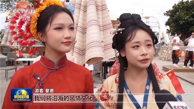 游客 黎恩:我们可以体验簪花,我们将沿海的风情文化和中国传统的服饰文化结合在一起,我觉得这是我们年轻人当中的新潮流、新风尚。
