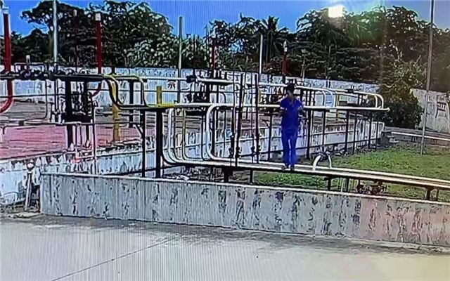 脚穿凉拖、未佩戴安全帽、脚踏燃气管道悠然而过,很难想象这是海南正宏液化气有限公司一名燃气供应站工作人员的日常工作情形。经检查,场站日常安全管理存在不严格、不到位的情况。
