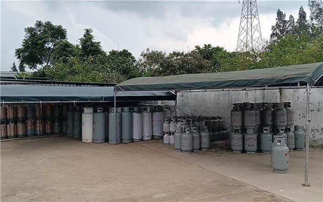 此外,综合检查组暗访还发现,燃气三级配送站存量超标、安全间距不足、未设置专用房间等隐患问题。海口市板桥路燃气服务部作为三级配送站,最多只能存放液化石油气420公斤,然而瓶库里实际存放了31只15公斤、3只50公斤钢瓶,总量超出上限46%,瓶库与站外道路防火间距不足5米,距离周围学校直线距离仅180米,严重威胁着公共安全。