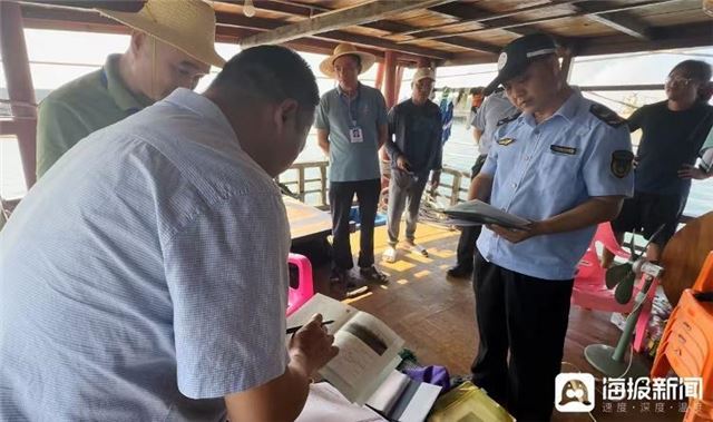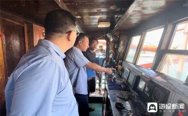 海报新闻记者随综合检查组专家在临高县新盈中心渔港抽查在港渔船