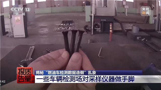 通常情况下,尾气是通过采样管传输到尾气检测仪,然后得出检测数据。而这家检测场将一个锯开凹槽的螺帽塞在采样管中,不合格的尾气只有极少部分能够通过凹槽进入检测仪,这样,数据就会显示为合格。